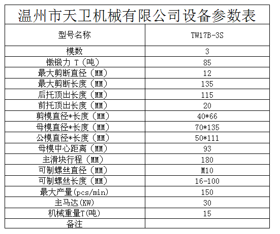 您當前的位置:首頁 / 產品中心 / 三模三沖冷鐓機 / └ TW17B(M10)多工位冷鐓機 / TW17B-3S全自動多工位冷鐓機